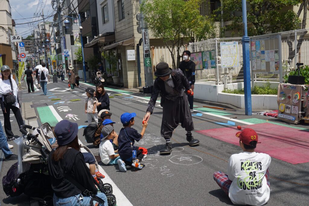 二子玉川商店街では、商店街通りを舞台に阿波踊りが練り歩き、大道芸でにぎわいます。